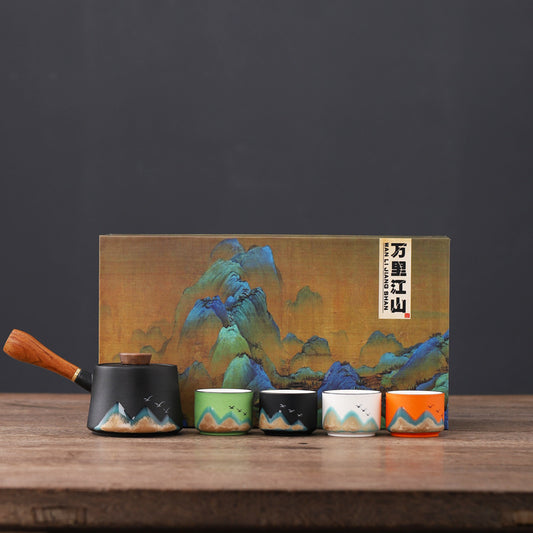 Colorful Horizons – Ceramic Teacups & Teapot Set of 4