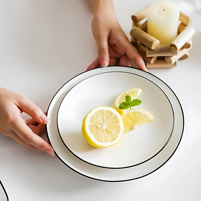 Elevate your dining experience with our Elegant European Style Black Line Series Dinnerware 16 Pcs, exclusively crafted by Tribal Culture.