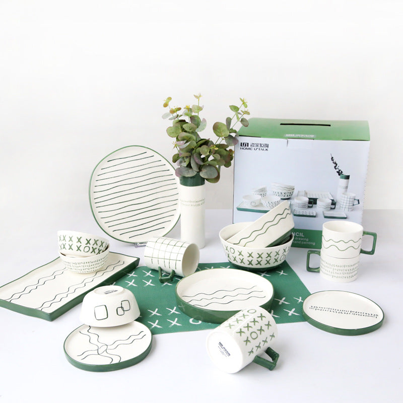Hand-Painted Western Style Crayon Dinner Set (Round 17-Piece)