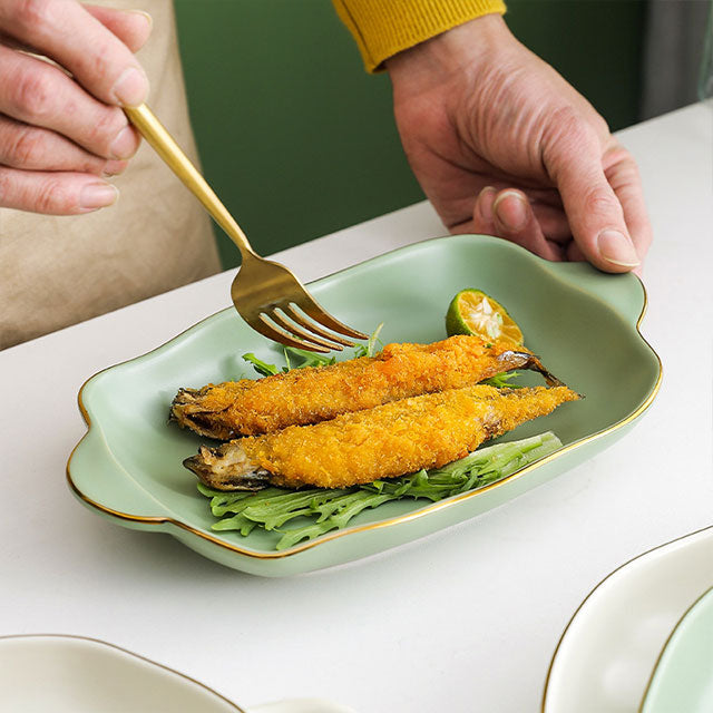 Modern Luxury Green Gold-Edged Porcelain Dinnerware Set, combining contemporary elegance with timeless sophistication. Made from premium porcelain, this set exudes luxury and durability, perfect for special occasions or everyday use.