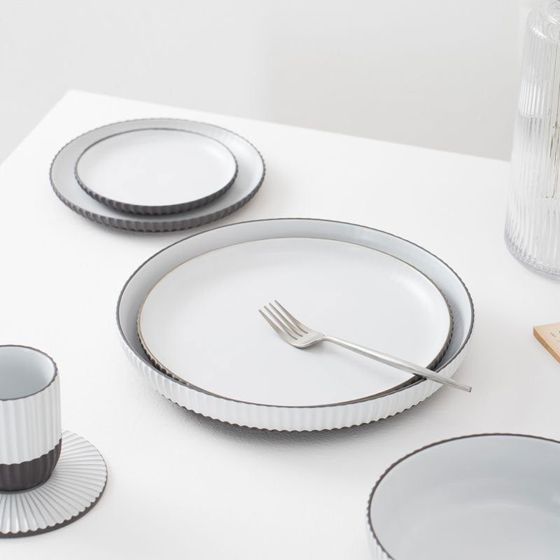Roman Vertical Pattern Embossed Ceramic Dinner Set